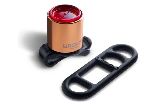Un feu arrière de bicyclette à LED rouge cuivré distinctif peut être rapidement fixé au cadre, au guidon ou à la tige de selle à l’aide d’un simple élastique et d’un clip qui n’endommagent pas les surfaces peintes ou polies. S’enlève facilement pour prévenir le vol. Assez petit pour être rangé dans votre poche, assez clair pour rester visible aux autres usagers de la route après la tombée de la nuit. Vous avez le choix entre un éclairage constant ou quatre modes de clignotement différents. Corps anodisé avec logo Brooks gravé au laser. Comprend 2 x piles CR2032