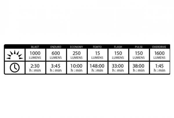 - MAX RUNTIME : 148 hours (Femto mode)