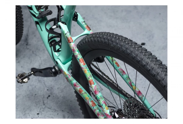 L’adhésif de protection vinyl transparent de 300 µm d’épaisseur, imprimés avec encres latex, prédécoupés s’adapte aux différents cadres vélos. Il peut être nécessaire de recouper certaines pièces avec une paire de ciseaux ou un cutter pour une parfaite adaptation au support.