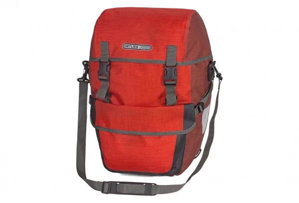 La paire de sacoches idéale pour chaque aventure : étonnant le volume d’équipement qui se glisse dans la Bike-Packer Plus d’ORTLIEB, c’est un véritable génie de l’espace ! La fermeture à couvercle classique se manoeuvre facilement et assure un espace de rangement maximal vers le haut. La poche frontale en trois dimensions étanche à l’eau offre un espace supplémentaire pour toutes ces petites choses auxquelles tu dois avoir accès rapidement sur la route. La toile de Cordura robuste à l’aspect d’un tissu de qualité garantit la meilleure protection de l’eau, de la poussière et de l’usure par frottement. Grâce au système éprouvé Quick-Lock2.1 à crochets à verrouillage automatique, c’est une affaire de quelques secondes que de fixer la Bike-Packer Plus sur le vélo ou de l’en détacher. Tu pourras ainsi te concentrer pleinement sur ton circuit et les belles choses que tu rencontreras de part et d’autre de ton chemin, et ce par tous les temps !
