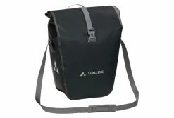Cette sacoche étanche pour roue arrière Vaude Aqua Back, en bâche résistante sans PVC, est climatiquement neutre et fabriquée sur le site allemand de VAUDE au bord du lac de Constance. Elle n’attend que vous pour partir à l’aventure ! Grâce à une fermeture par enroulement totalement étanche, sa taille est ajustable et son contenu reste bien au sec. Une poche intérieure simple permet de bien ranger ses affaires. Ces sacoches sont fixées à droite et à gauche du porte-bagages arrière et stables grâce au système QMR 2.0 et à une plaque rigide. Elles sont ajustables à l’aide de petites roues et peuvent rapidement et facilement être fixées et enlevées. Elles peuvent être attachées directement au crochet QMR en utilisant tout simplement un cadenas à vélo. Des éléments réfléchissants garantissent une meilleure visibilité sur la route.