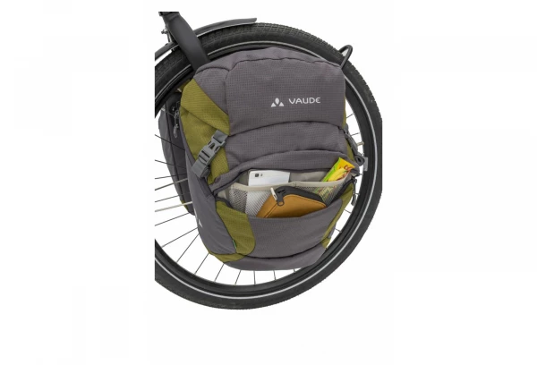 Les sacoches pour roue avant résistantes pour les voyageurs à vélo sont volumineuses avec une capacité respective de 16 l et pratiquement aussi polyvalentes que les sacoches arrière OnTour Back. Le compartiment principal séduit par sa poche en filet, son porte-clés et une fermeture intégrés au rabat. Le soufflet d’élargissement permet de bien comprimer le paquetage. Un compartiment latéral permet de conserver de petits accessoires pour un accès rapide. Les sacs dotés des éléments réfléchissants sont fixés au porte-bagage avant de manière stable à droite et à gauche à l’aide du système QMR 2.0. Ils s’ajustent facilement à l’aide d’une molette et peuvent être facilement retirés en toute rapidité. Un petit cadenas de vélo (145/20) permet de la verrouiller directement sur le crochet QMR. Des housses de pluie sont disponibles pour les deux sacs. Les sacs bénéficient d’une finition durablement déperlante Eco Finish sans PFC. Un bon point pour toi comme pour l’environnement.