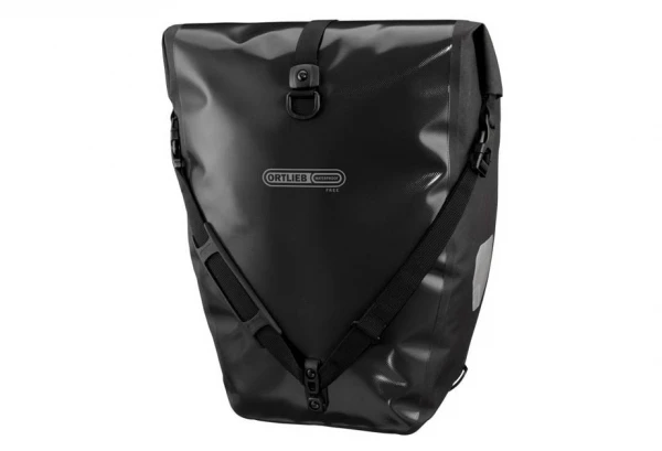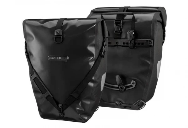 Pour tous ceux qui veulent entièrement renoncer au PVC : la paire de sacoches Back-Roller d’Ortlieb tant éprouvée dans sa variante exempte de PVC. Cette paire de sacoches de porte-bagages à fermeture par enroulement est ultra pratique pour les circuits à vélo, ou les gros achats du samedi, car vous pourrez y faire entrer pas mal de choses ! Extérieur étanche à l’eau, intérieur facile à nettoyer, et avec sangle d’épaule permettant de la porter en bandoulière, la Back-Roller Free est quasiment indispensable pour tous ceux qui souhaitent circuler à vélo avec pas mal de bagages. Grâce au système Quick-Lock2.1, les sacoches s’adaptent à tout porte-bagages à diamètre de rail ne dépassant pas 16 mm. Des crochets plus grands, par ex. pour vélos électriques, sont proposés comme accessoires vendus séparément.