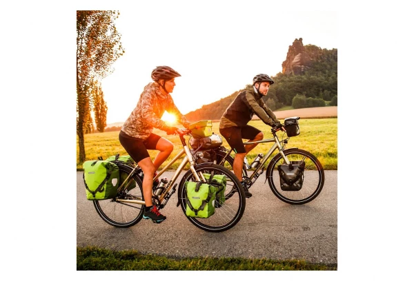 Endurante et robuste, la paire de sacoches de porte-bagages Ortlieb Sport-Roller Plus brave même les conditions les plus défavorables. Conçue en toile de Cordura résistante à l’abrasion, elle s’adapte sur les porte-bagages « lowrider » de roue avant ou sur le porte-bagages arrière, et peut être également utilisée sur le vélo de votre enfant en tant que première sacoche. Les fermetures pratiques à enroulement, assurent l’étanchéité du Sport-Roller Plus et offrent un volume de rangement suffisant pour tous les ustensiles de voyage importants. Le système Quick-Lock2.1 permet de l’accrocher rapidement au vélo.
