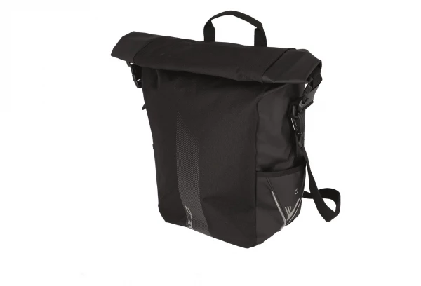 À utiliser avec le système de transport Clip, la Paire de Sacoches de Porte-Bagages XLC Double Bag V-Light Rolltop Clip BA-S106 est un double sac idéal pour les systèmes de sacoches arrière. Les deux sacoches spacieuses sont dotées de bandes réfléchissantes XLC ainsi que de lampes en V rouges sur le côté, avec trois modes d’éclairage, parfaits pour rouler de nuit ou par faible visibilité.