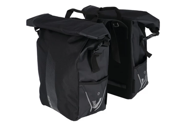 La paire de sacoches dispose d’une grande capacité, chaque sac pouvant contenir entre 28 litres. Vous pouvez facilement protéger vos affaires des éléments grâce à la fermeture par enroulement (Roll Top) et au matériau imperméable, ce qui en fait un complément idéal à votre bagage à vélo pour les courses ou les déplacements quotidiens.