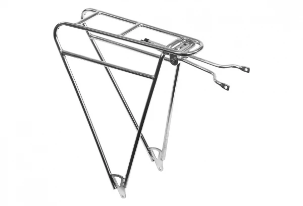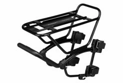 Porte-bagages arrière en acier, les tubes surbaissés permettent d’accrocher les sacoches latérales plus bas et de laisser libre le plateau du porte-bagages.