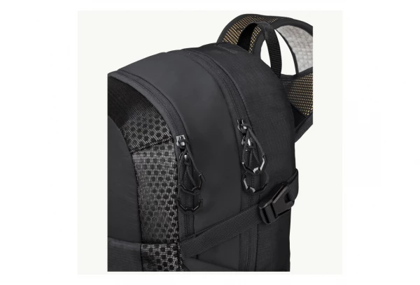 Avec le système de portage AEROSHAPE léger et particulièrement confortable, le sac à dos est bien ajusté près du corps sans gêner vos mouvements. Le canal central d’aération et les rembourrages dorsaux perméables à l’air, assurent au dos d’être en permanence légèrement rafraîchi. Grâce à une construction innovante d’une seule pièce, les déchets de production sont réduits à un minimum absolu. De plus, le Mesh utilisé est entièrement réutilisé, tout comme le matériau principal et la doublure.