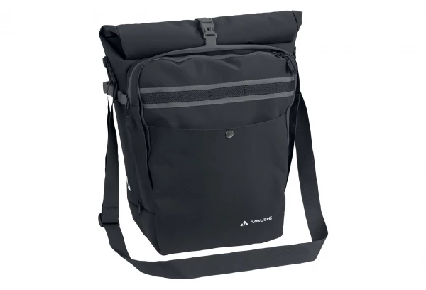 Cette sacoche étanche pour roue arrière Vaude Aqua Back Deluxe en bâche résistante sans PVC, est climatiquement neutre et fabriquée sur le site allemand de VAUDE au bord du lac de Constance. Elle n’attend que vous pour partir à l’aventure ! Grâce à une fermeture par enroulement totalement étanche, sa taille est ajustable et son contenu reste bien au sec. Une poche intérieure simple permet de bien ranger ses affaires. Ces sacoches sont fixées à droite et à gauche du porte-bagages arrière et stables grâce au système QMR 2.0 et à une plaque rigide. Elles sont ajustables à l’aide de petites roues et peuvent rapidement et facilement être fixées et enlevées. Elles peuvent être attachées directement au crochet QMR en utilisant tout simplement un cadenas à vélo. Des éléments réfléchissants garantissent une meilleure visibilité sur la route.