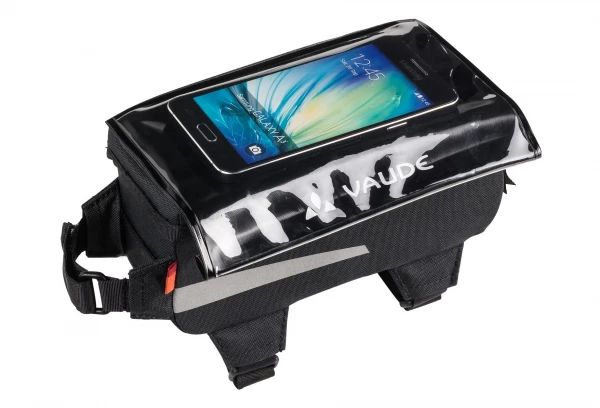 Agrandissez votre cockpit ! Cette sacoche compacte permet de ranger à portée de main la barre énergétique et un peu de monnaie ; elle est équipée d’une housse amovible et étanche à l’eau pour y ranger votre smartphone et suivre le GPS. Les deux sont faciles et rapides à installer. Le label Green Shape de VAUDE garantit des produits fonctionnels et écologiques en matières durables.
