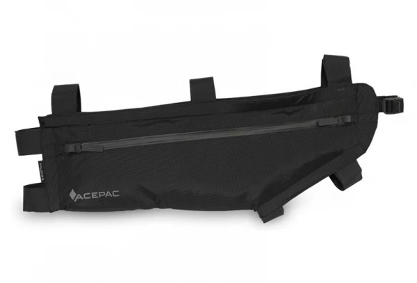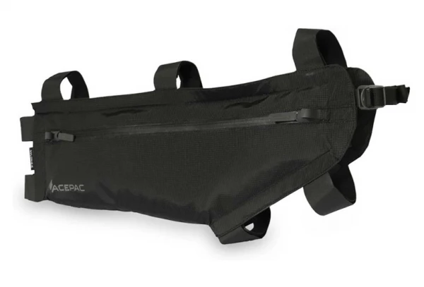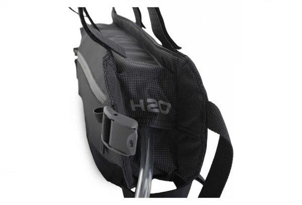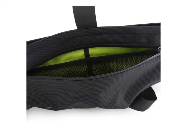 Le périmètre du sac est renforcé avec un tissu plus épais pour une plus grande résistance à l’abrasion et rembourré de mousse pour que le sac conserve bien sa forme et que son contenu n’endommage pas le cadre pendant la conduite. La fermeture du sac avec une fermeture éclair YKK hydrofuge à deux curseurs permet d’ouvrir le sac du côté gauche ou droit et ainsi d’accéder directement au contenu du sac recherché.