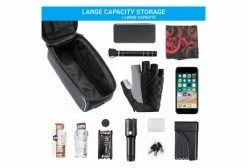 Le sac est équipé de deux fermetures éclair asymétriques, une de chaque côté, pour pouvoir l’ouvrir facilement lorsque vous roulez. Trois boucles Velcro assurent une fixation sécurisée au tube supérieur de votre vélo. Des attaches supplémentaires à l’avant et à l’arrière empêchent le sac de vaciller pendant votre trajet.
