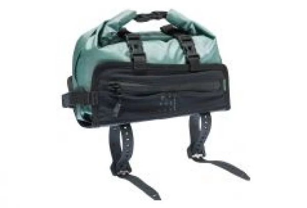 - Deux petites poches latérales élastiques permettent de ranger une barre ou un stick à lèvres. L’intérieur imperméable est sécurisé par une fermeture à glissière et enroulé de manière imperméable selon la charge (max. 3 L) et fixé dans le support par deux sangles sécurisées par des fermoirs.