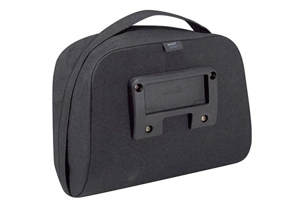 - Une sangle en tissu, très pratique pour porter le sac, couvre le zip double.