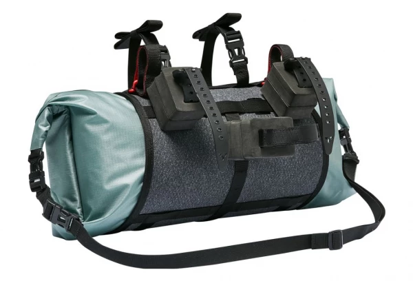 - Cette sacoche de 13 L est accessible des deux côtés et compressible via des fermetures par enroulement imperméables ; Elle convient parfaitement au transport de bagages légers et d’un sac de couchage. Sur le dessus de la sacoche, des sangles de maintien permettent la fixation à l’extérieur d’un bagage supplémentaire et même d’une tente. Le support de la sacoche est adapté à tous les guidons de VTT et aussi compatible avec tous les guidons courants de Gravel ou de vélo de course avec sa largeur de 30 cm. Son montage simple est effectué sur le tube de guidon et de direction.
