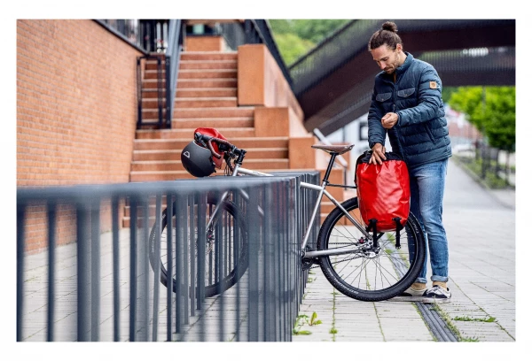 - Sacoche de vélo avec couvercle de fermeture offrant un grand volume.