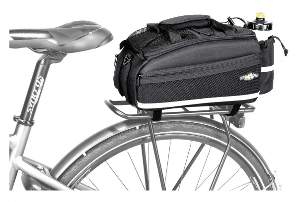 Les panneaux latéraux moulés doubles se combinent avec un tissu flexible 600 deniers pour former un sac de coffre semi-rigide et résistant aux intempéries. Comprend un compartiment principal divisé avec des compartiments latéraux en filet et un porte-bouteille à l’arrière. Se fixe à un rack avec des sangles, ou utilise la plaque intégrée pour installer rapidement et facilement un KLICKfix® / Racktime® Snapit ou Vario Adapter.