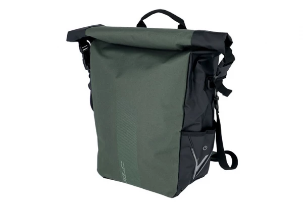 La Sacoche de Porte-Bagages XLC BA-S105 ne se contente pas d’être joli. Grâce à son grand volume de rangement, on a la possibilité de tout transporter, des courses aux ustensiles pour les excursions du week-end. Fabriqué en Tarpaulin, le tissu de la sacoche est extrêmement résistant et hydrofuge. De nombreux petits détails font de la sacoche XLC une du rangement pour le vélo, mais aussi pour le style de vie urbain. Les feux latéraux en V, qui peuvent être utilisés selon 3 modes et qui rendent le cycliste particulièrement visible dans la circulation, constituent le point fort de cette sacoche.