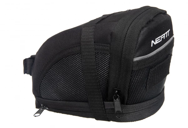 La sacoche de selle Neatt offre une contenance de 2.4L, la grande ouverture zippé est idéale pour y insérer et transporter tous vos accessoires de réparation ou nutrition. Elle dispose d’une sangle velcro pour une fixation sure et stable.