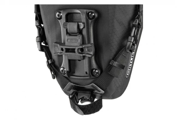 La Saddle-Bag Two se fixe directement à la selle grâce à son clip réglable. L’adaptateur, facile à manier, permet de l’accrocher et la décrocher rapidement. De plus, le clip de fixation est compatible avec le précédent modèle de la Saddle-Bag Two, vous pouvez donc l’utiliser pour différents vélos. Une sangle auto-agrippante sur la tige de selle assure une stabilité supplémentaire, limitant ainsi les ballottements de gauche à droite. Autre avantage, cette grande sacoche de selle remplace pratiquement le garde-boue arrière et repousse, en grande partie, les projections d’eau.