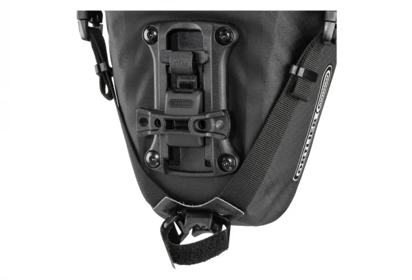 La Saddle-Bag Two se fixe directement à la selle grâce à son clip réglable. L’adaptateur, facile à manier, permet de l’accrocher et la décrocher rapidement. De plus, le clip de fixation est compatible avec le précédent modèle de la Saddle-Bag Two, vous pouvez donc l’utiliser pour différents vélos. Une sangle auto-agrippante sur la tige de selle assure une stabilité supplémentaire, limitant ainsi les ballottements de gauche à droite. Autre avantage, cette grande sacoche de selle remplace pratiquement le garde-boue arrière et repousse, en grande partie, les projections d’eau.