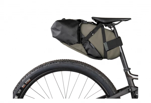 Une sacoche de grande capacité spécialement conçue pour les cyclistes qui souhaitent transporter leur matériel sans avoir besoin d’un porte-bagage. Le tissu renforcé, antidérapant et anti-rayures protège la selle tandis que le système de fixation avancé permet un montage pratique et sûr sur la tige de selle et les rails de selle. La sacoche de selle étanche, facile d’accès et la valve de purge d’air intégrée vous permettra de garder votre sacoche compacte et sèche lors de votre prochaine aventure.
