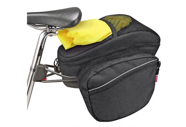 - De larges sacoches latérales avec zip et poche supplémentaire filet d’un côté, zippée de l’autre.