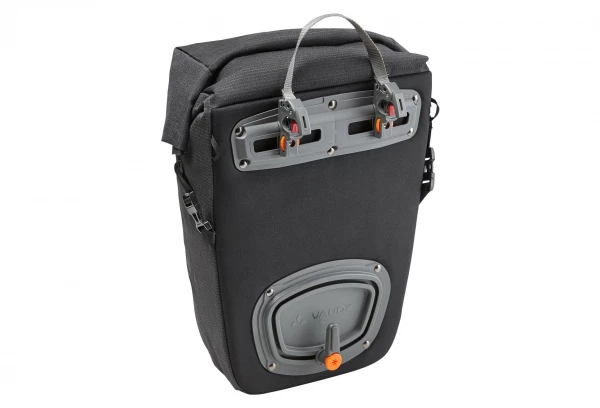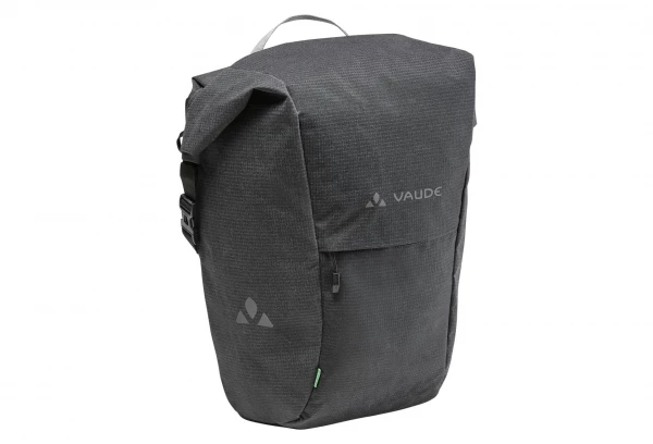 Un multitalent très en souplesse avec un plus en termes de visibilité ! La sacoche arrière Road Master Roll-It, avec son matériau principal hautement réfléchissant, séduit par sa fermeture à enroulement sans complication. Elle se fixe aisément sur des porte-bagages jusqu’à 16 mm de diamètre grâce au système de fixation QMR 2.0. Il suffit de tirer sur la bande reliant les deux crochets pour ouvrir le système. Le compartimentage avec un grand compartiment principal et un petit compartiment avant zippé pour abriter les affaires précieuses est idéal pour transporter des documents de travail. À destination, la sacoche se porte confortablement à l’aide de la bandoulière réglable en longueur. La plaque dorsale souple et la housse de pluie contenue dans la livraison permettent de compresser la sacoche de vélo et de la sortir rapidement pour les petites et grandes virées à vélo par tous les temps. Road Master Roll-It Luminum est fabriqué selon les critères Green Shape de VAUDE en polyester recyclé. Ce produit est de plus climatiquement neutre : les émissions issues des matériaux, des processus de fabrication et du transport ont été déterminées de manière holistique et systématiquement réduites. Les émissions actuellement inévitables ont été entièrement compensées par l’organisation indépendante à but non lucratif « myclimate ». Compris dans la livraison : 1 sacoche
