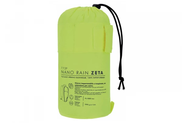 Veste anti–pluie super compactable, avec soufflet au niveau du dos pour loger un sac à dos