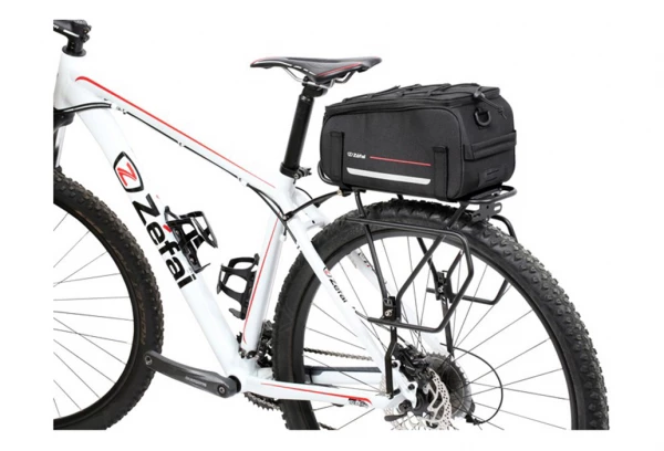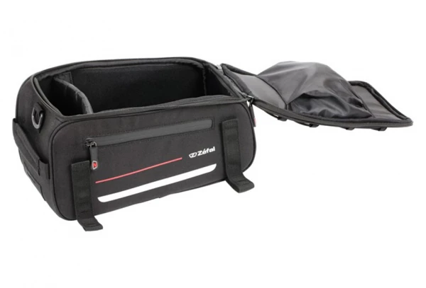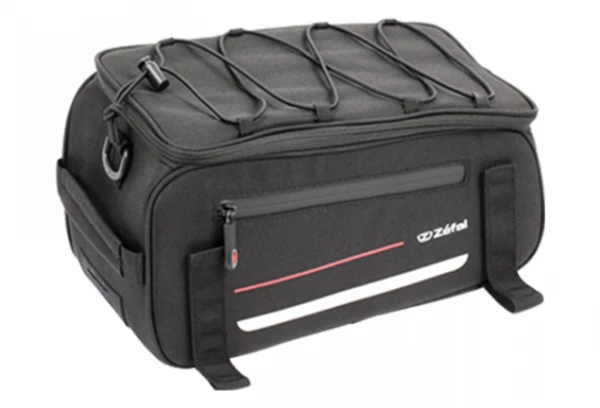 Avec une capacité de 9 L, le Zéfal Z Traveler 40 est un bagage compatible avec tous types de porte-bagages grâce à son système de fixation par Velcro®. Il possède un passant pour éclairage, des bandes réfléchissantes, une bandoulière et une housse de pluie.